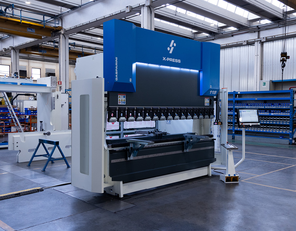 Metalmobile S.r.l. è un'azienda storica di Zola Predosa (BO), che realizza opere di carpenteria metallica, scaffalature per interni e mobili di disegno industriale. Ci hanno commissionato una pressa piegatrice idraulica su misura, con una capacità di 115 tonnellate e una lunghezza del piano di lavoro di 3100 mm. La luce banco-traversa è di 600 mm, la corsa è pari a 300 mm.