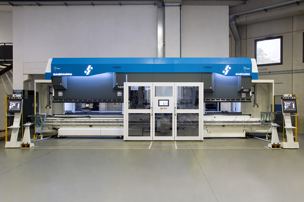Per Effediemme azienda che si occupa della lavorazione dell’acciaio e del metallo, abbiamo realizzato due presse piegatrici idrauliche nuove che si differenziano per tonnellaggio e lunghezza: la prima da 165 t per 3100 mm, e la seconda da 80 t per 2100 mm. Sono state progettate appositamente su richiesta del cliente per poter essere utilizzate in coppia, con l’aggiunta del cambio utensili automatico Agile², il quale permette di associare le due piegatrici al medesimo magazzino e attrezzarle attraverso un unico sistema. In collaborazione con Argesystems abbiamo implementato questo cambio utensili automatico su misura per le nostre presse piegatrici Gasparini Industries, per le aziende che richiedono il massimo dalle loro macchine. In questo modo possono ottenere un notevole miglioramento dell’efficienza che si traduce poi in un netto aumento della produttività.
