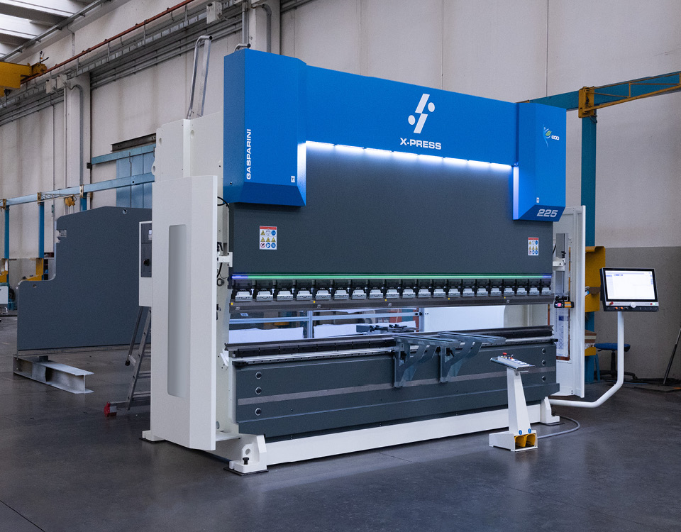 This press brake with Easy Design is equipped with the Gasparini Adaptive Crowning System and the E-Reflex Deformation Compensation System. The combination of these two systems gives excellent results in terms of quality, precision and repeatability of the parts to be bent. Thanks to the camber, in fact, the two beams are perfectly parallel and it is possible to obtain total control of the angle. The E-Reflex then monitors the bending of the structure thanks to a network of sensors in the press brake and hydraulic system. The error is measured and compared with the crosshead position and oil pressure. We can thus calculate the actual height at which the punch is located, irrespective of deformations.